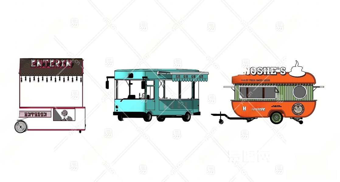 现代风格其他店铺 快餐车 花车 外卖车 装饰车 甜品站 摊位 展示柜