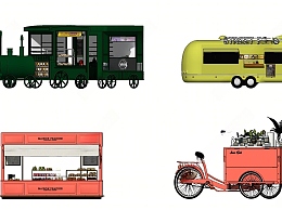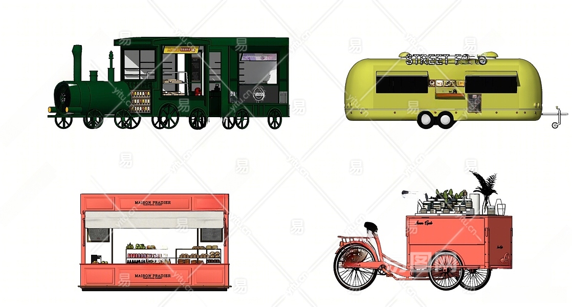 现代风格其他店铺 快餐车 花车 外卖车 装饰车 甜品站 摊位 展示柜