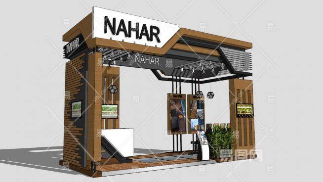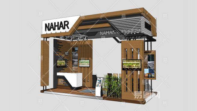 现代简约木头售卖亭SU模型下载_sketchup草图大师SKP模型
