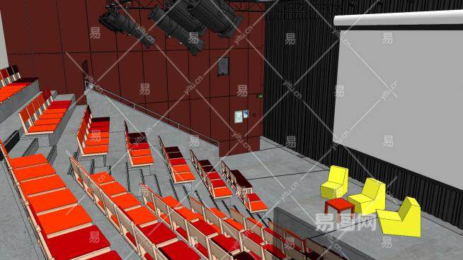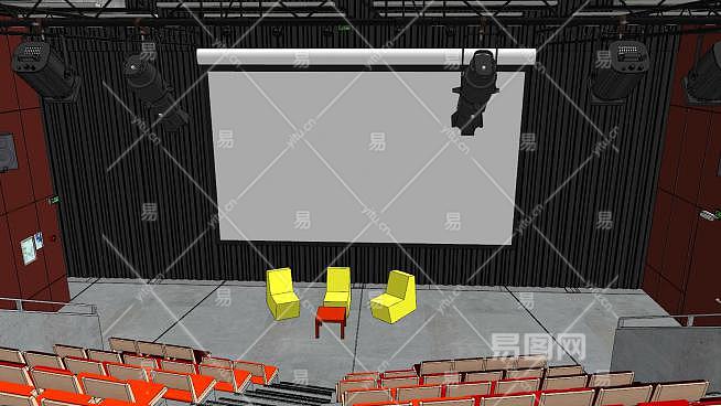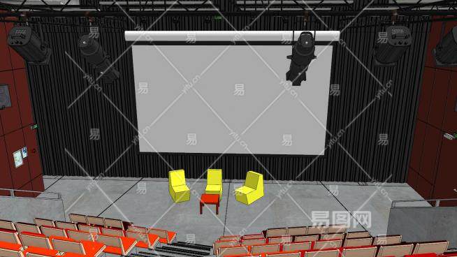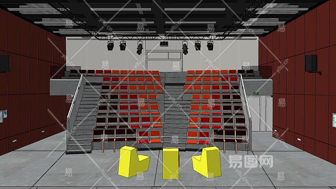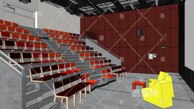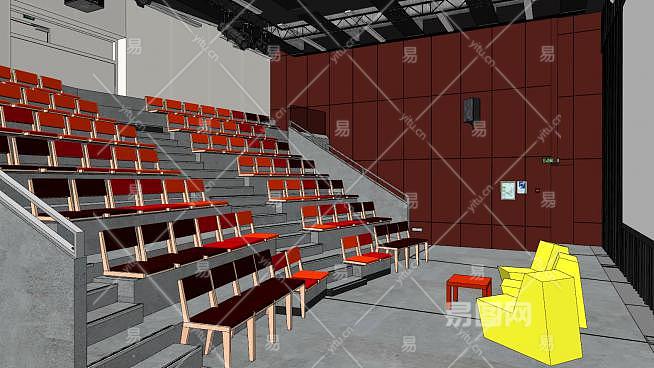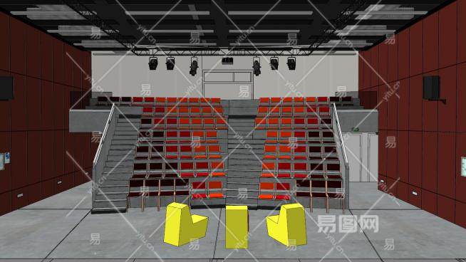 学校礼堂室内空间SU模型下载_sketchup草图大师SKP模型
