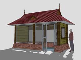 仿古景区售卖亭SU模型下载_sketchup草图大师SKP模型