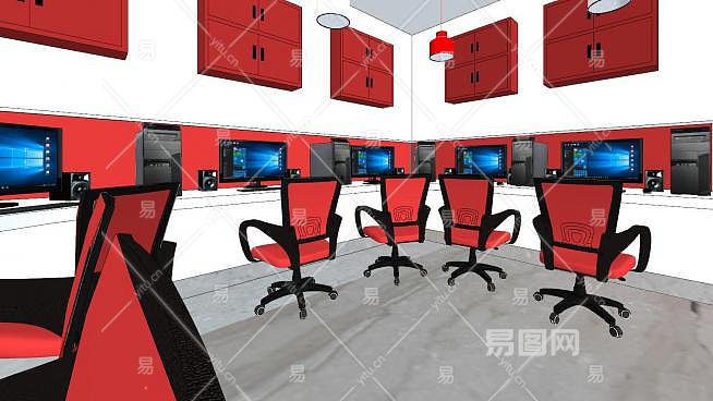 现代网咖设计SU模型下载_sketchup草图大师SKP模型