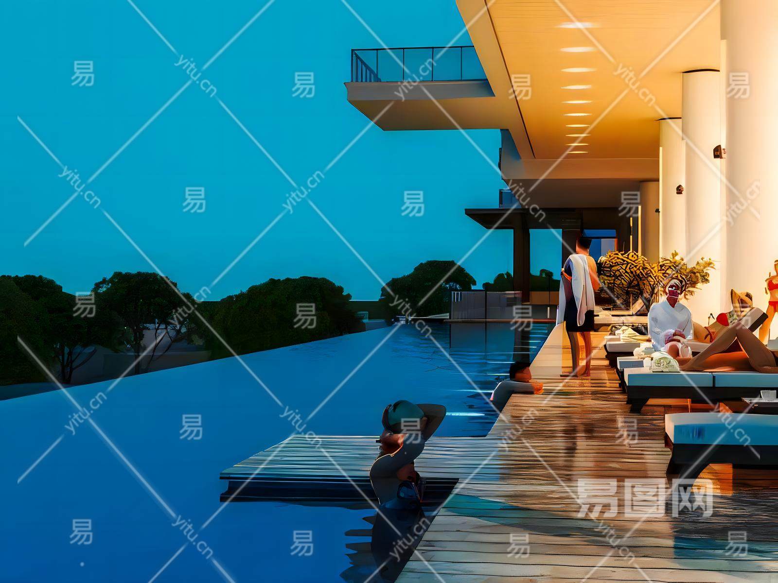 现代户外游泳池
