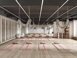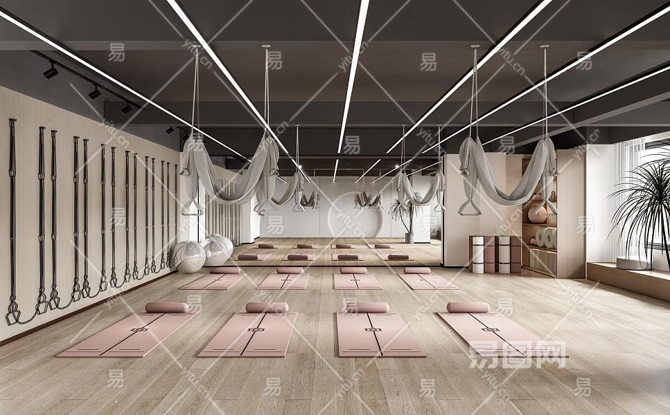 现代健身瑜伽教室 瑜伽垫 吊灯射灯 盆栽