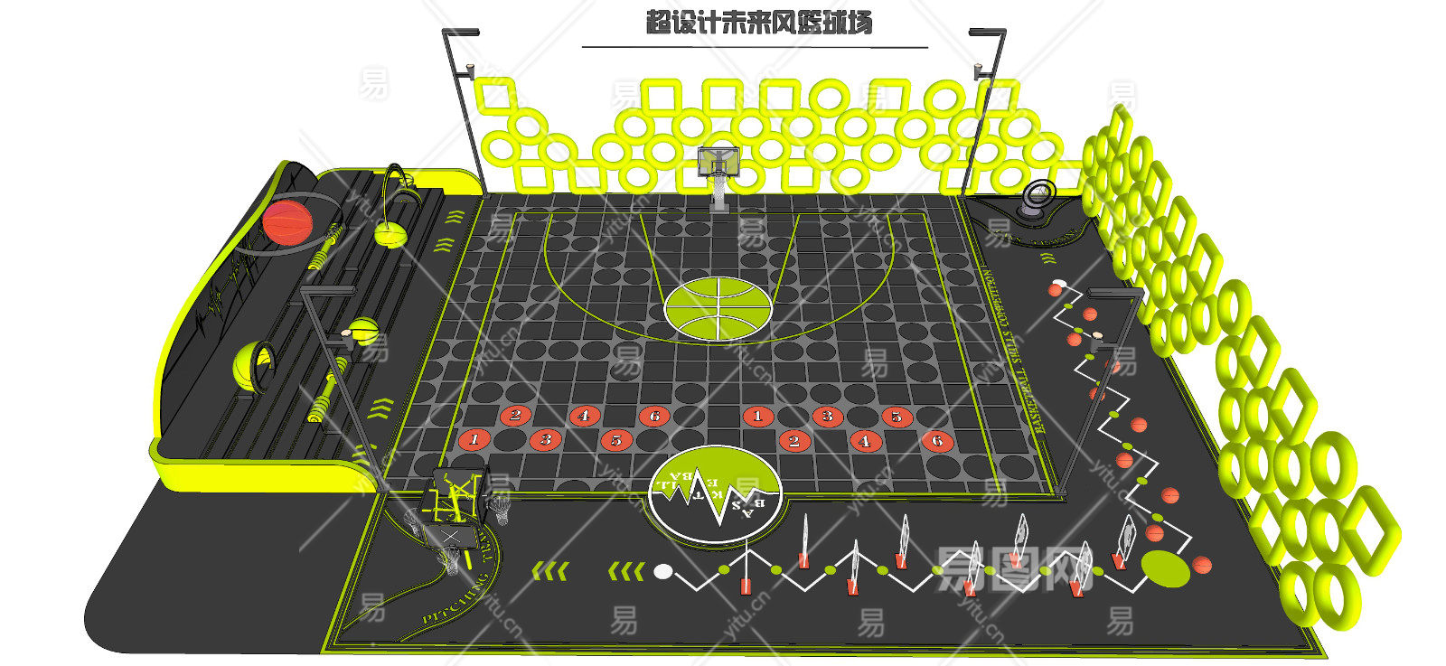 现代篮球场 健身运动场 体育活动场地 运动公园