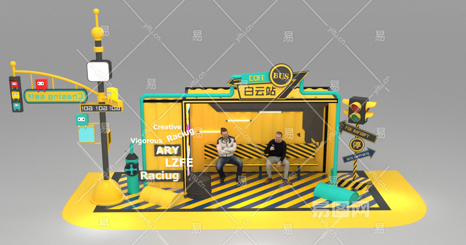 工业风格公交站台 指示牌导示牌 智慧公交站 候车亭 工业廊架