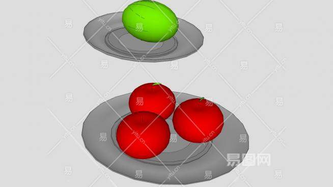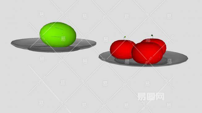 盘子上的西瓜和苹果SU模型下载_sketchup草图大师SKP模型