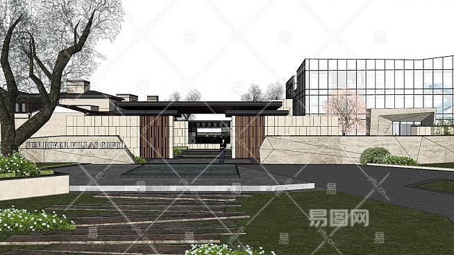 别墅小区售楼处SU模型下载_sketchup草图大师SKP模型