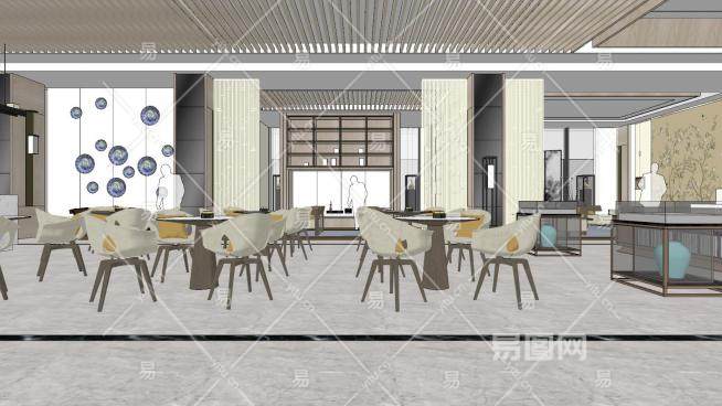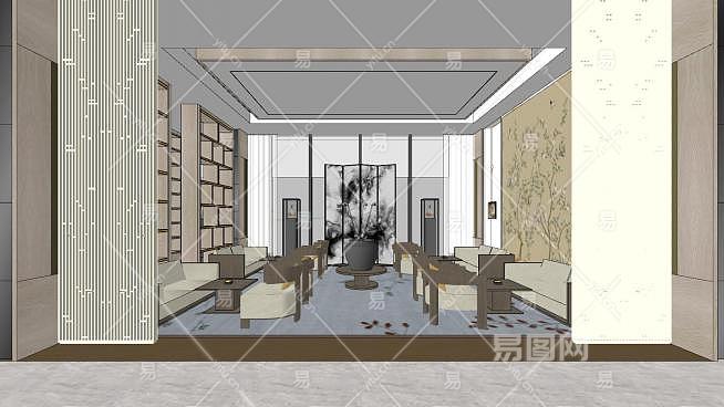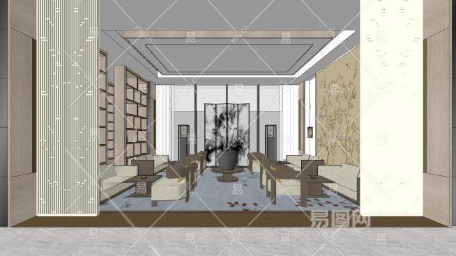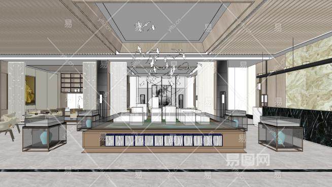 新中式售楼中心室内SU模型下载_sketchup草图大师SKP模型