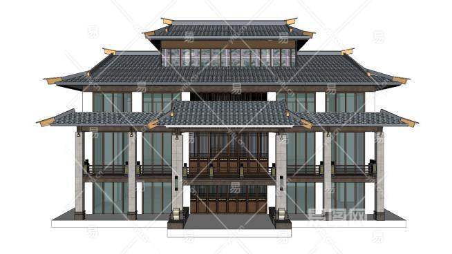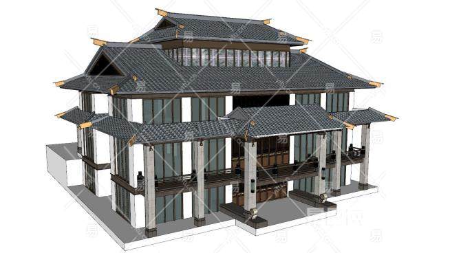 新中式售楼中心sketchup模型下载_sketchup草图大师SKP模型