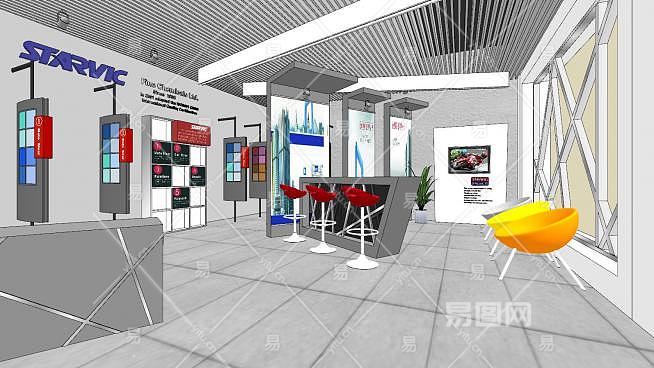 现代售楼中心设计SU模型下载_sketchup草图大师SKP模型
