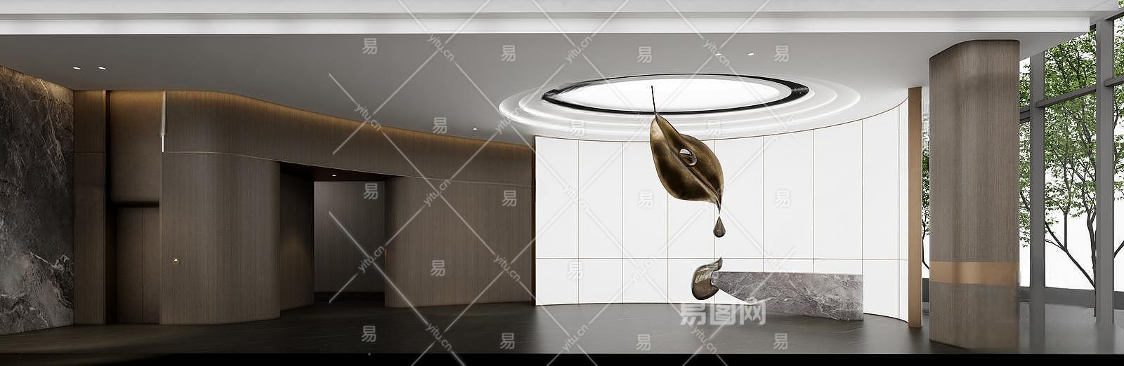 现代售楼处内部 前厅 吧台 艺术吊灯 接待厅