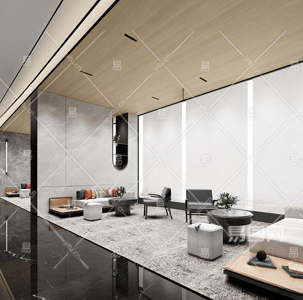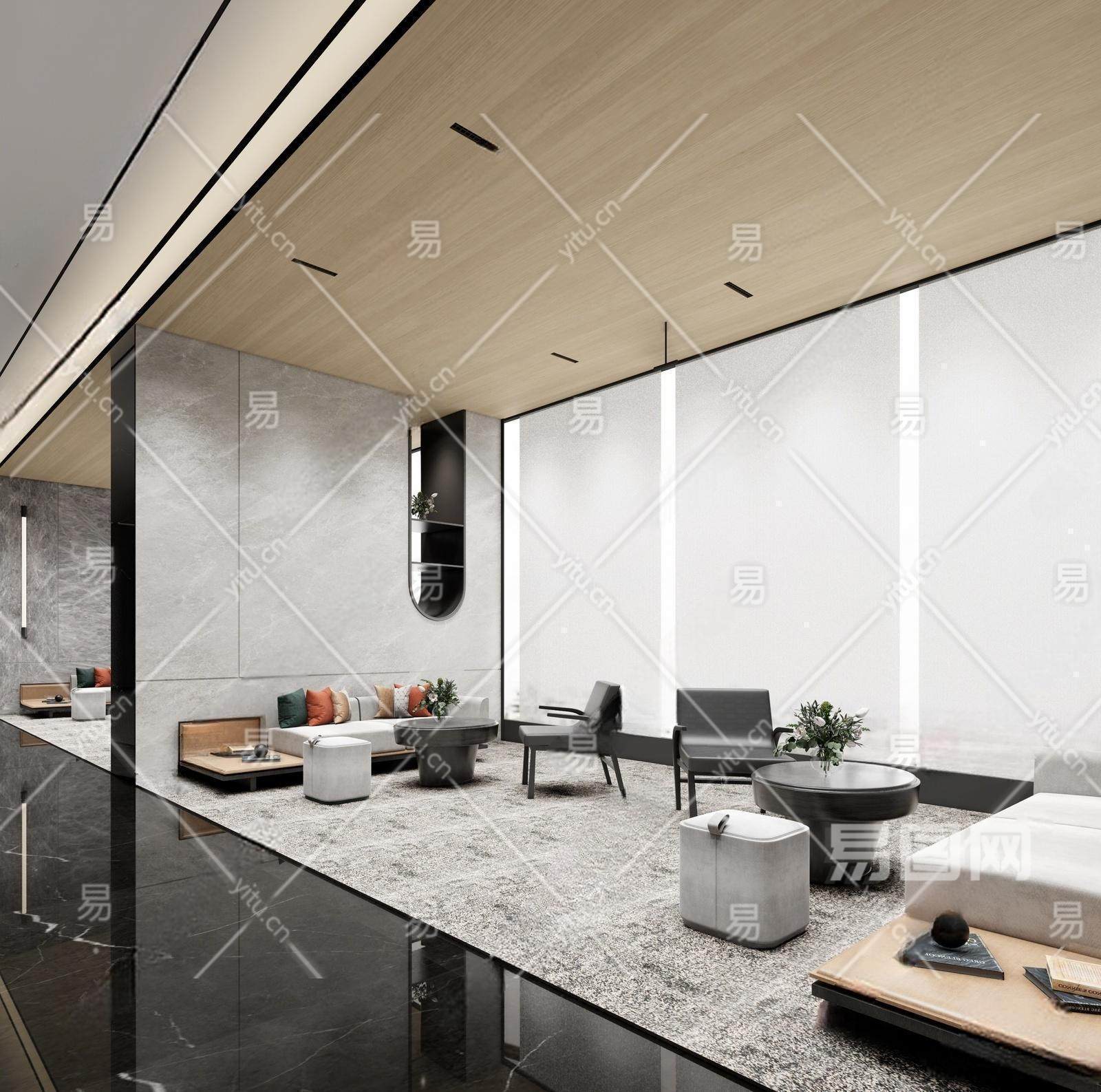 现代售楼处洽谈区 沙发茶几组合 花瓶