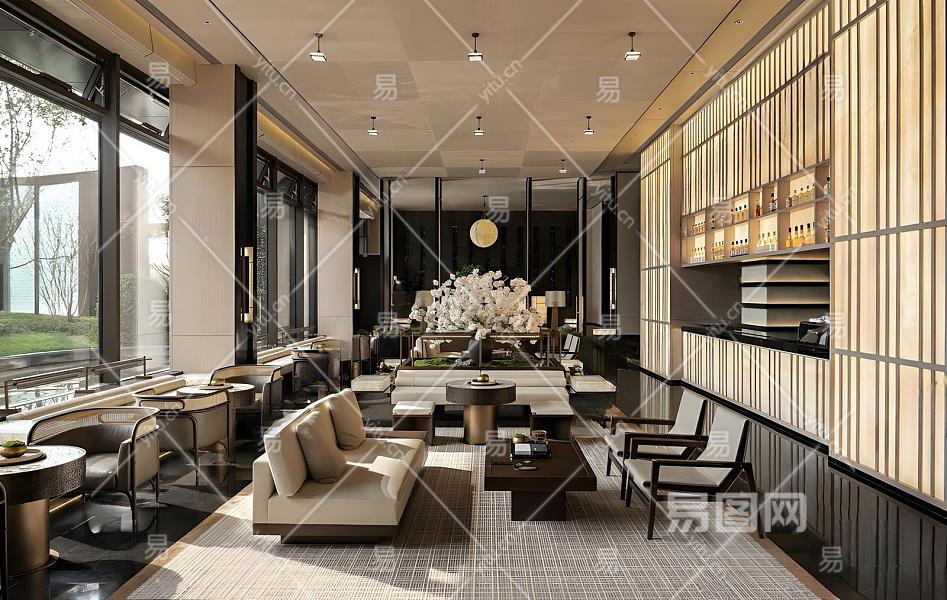 售楼处洽谈区 方形吊顶