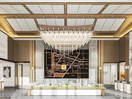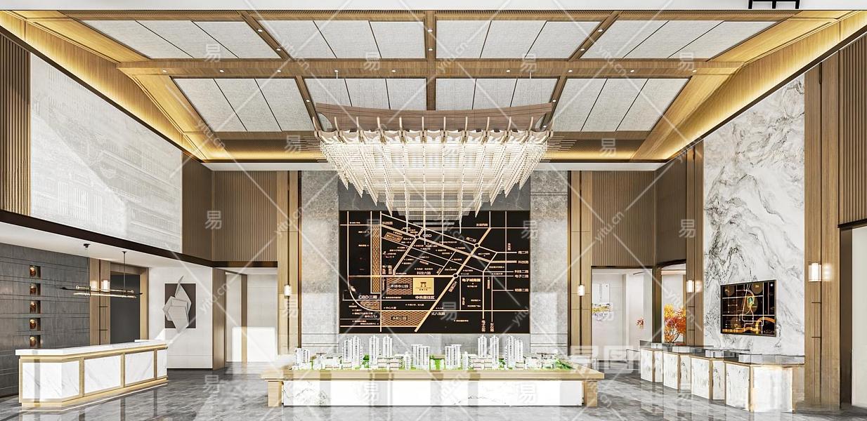 新中式售楼部 接待大堂 沙盘模型 接待大厅 洽谈区 售楼部吊灯