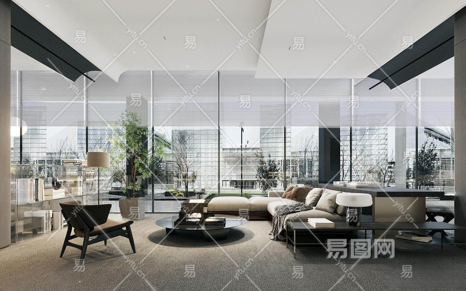 现代售楼处 休息区 景观小品