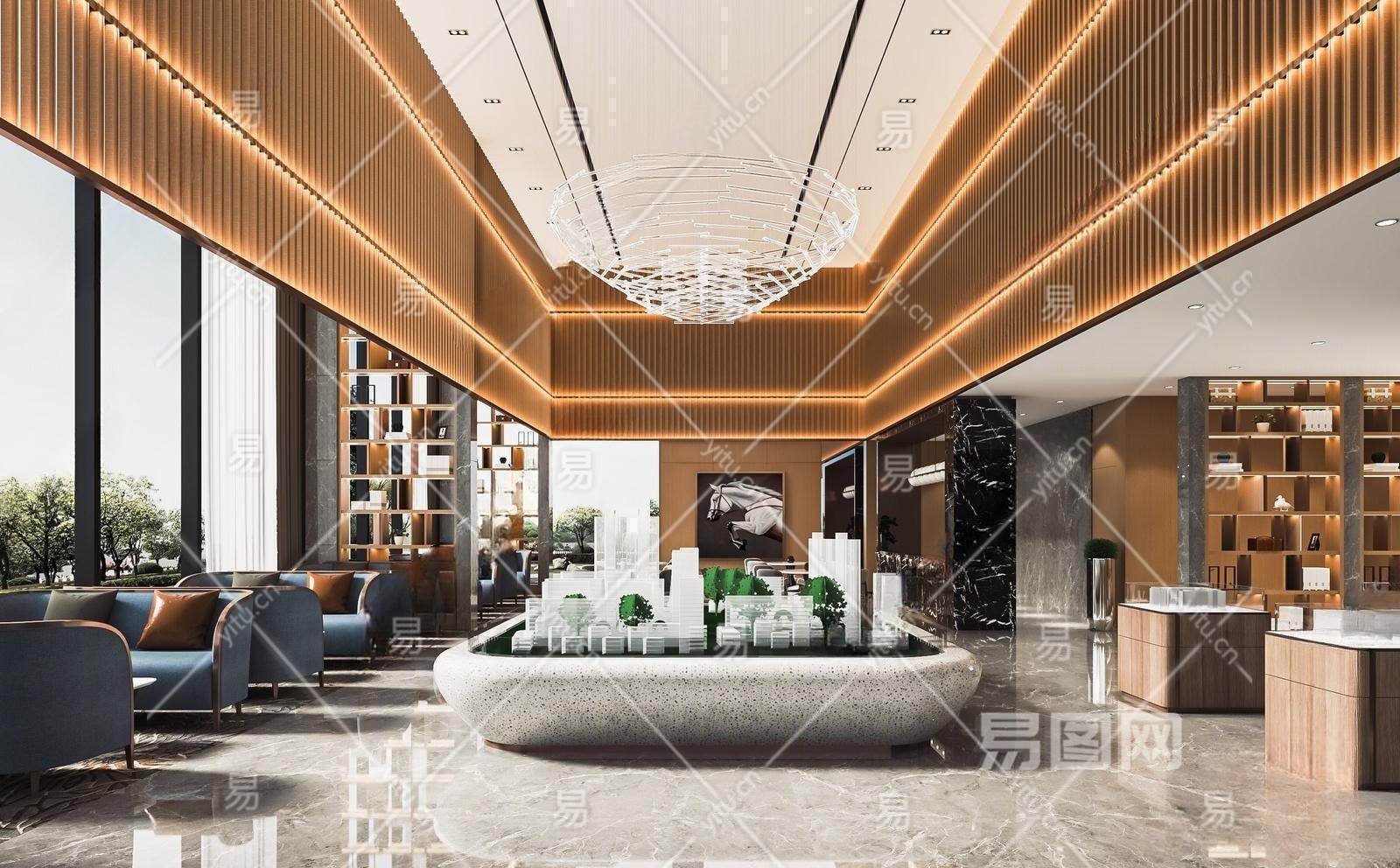 现代售楼处休息区 洽谈区 沙盘区 洽谈桌椅 沙盘 大厅大堂