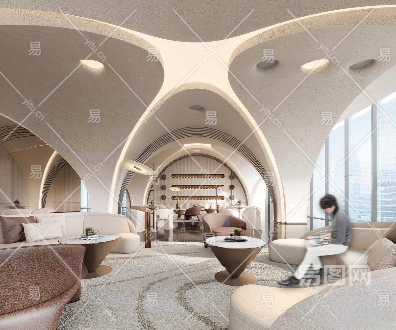 现代售楼处内部 售楼部洽谈处 休息处 沙发茶几组合