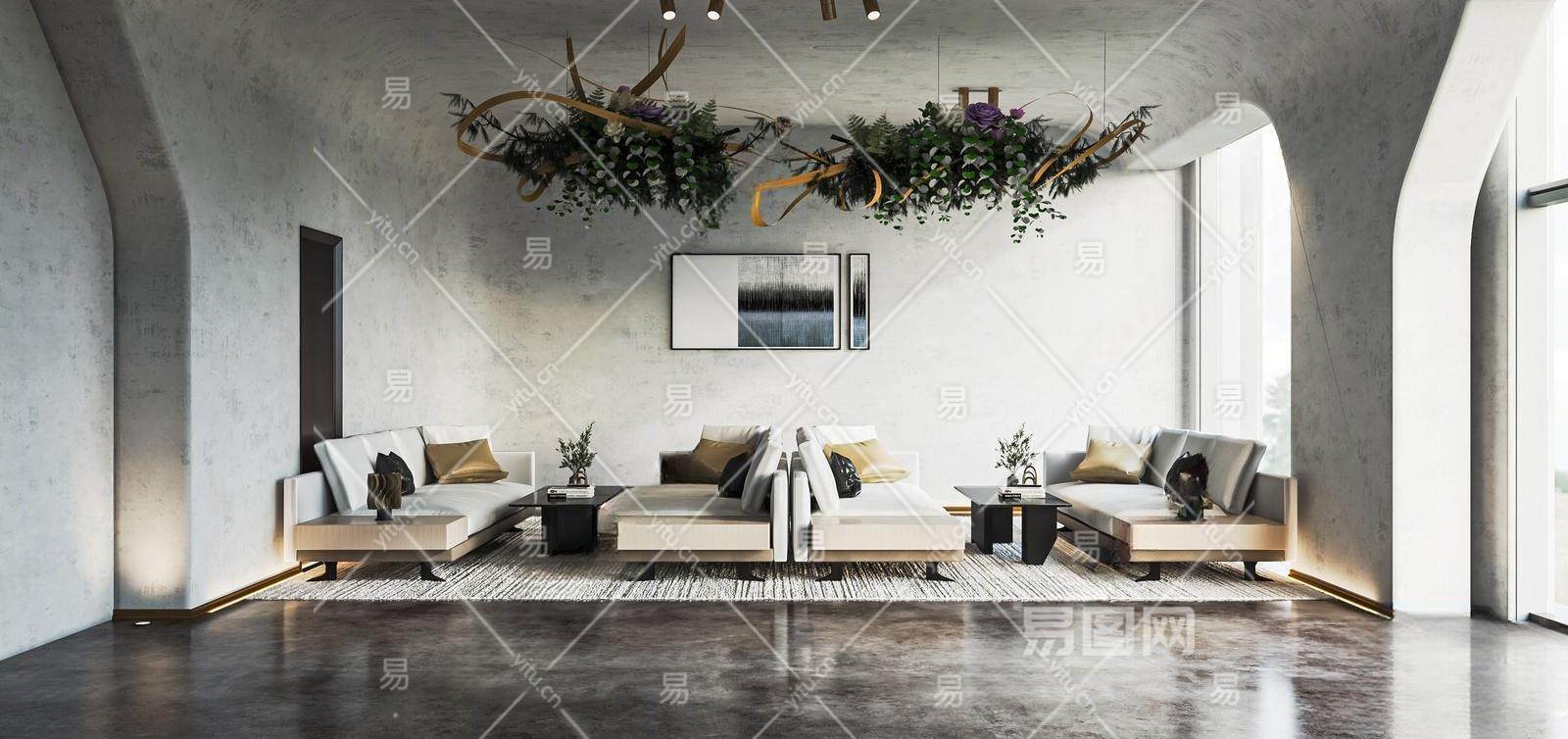 现代售楼处洽谈区 沙发茶几组合 艺术吊灯