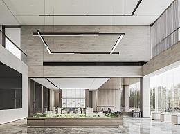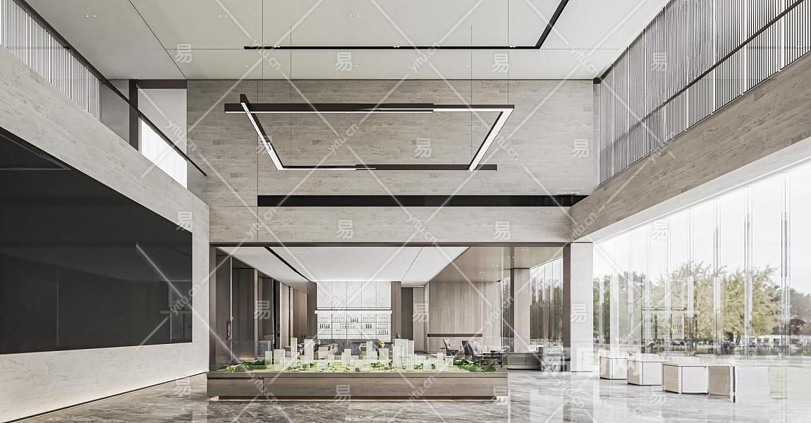现代售楼部 接待大厅 洽谈区 沙发茶几组合 沙盘 前台 展示柜