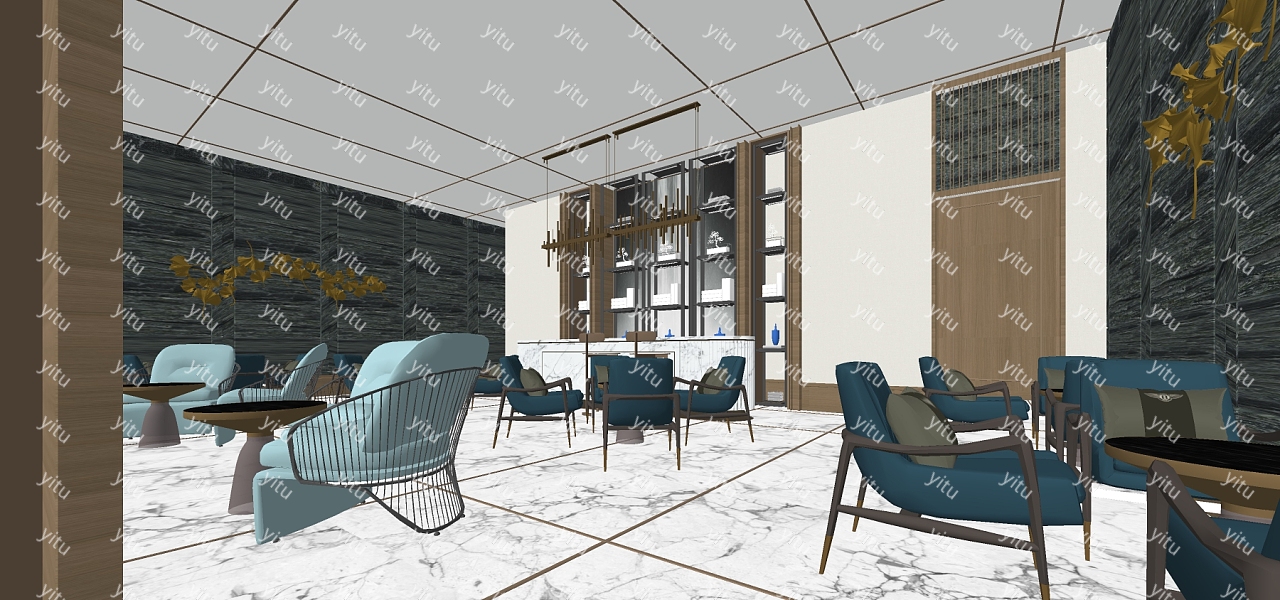 新中式售楼处草图大师模型,销售沙盘中心su模型下载