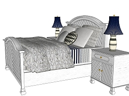 简欧双人床免费su模型,双人床sketchup模型下载