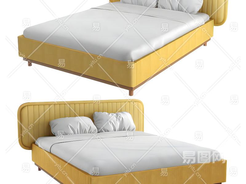 现代黄色布艺双人床