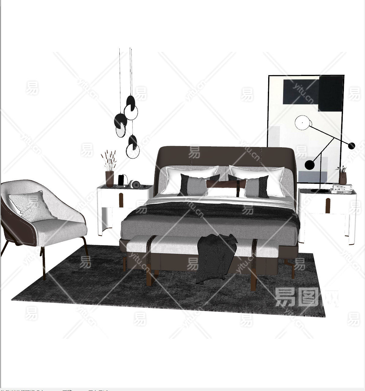 当前的位置:首页 > sketchup > sketchup模型 > 床具 > 双人床 > 简欧卧室双人床组合