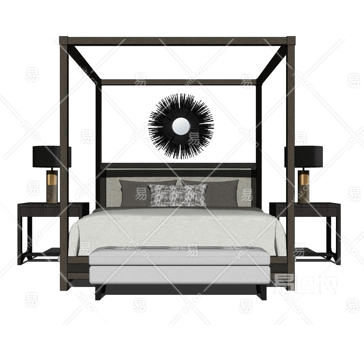 当前的位置:首页 > sketchup > sketchup模型 > 床具 > 双人床 > 简欧卧室双人床组合