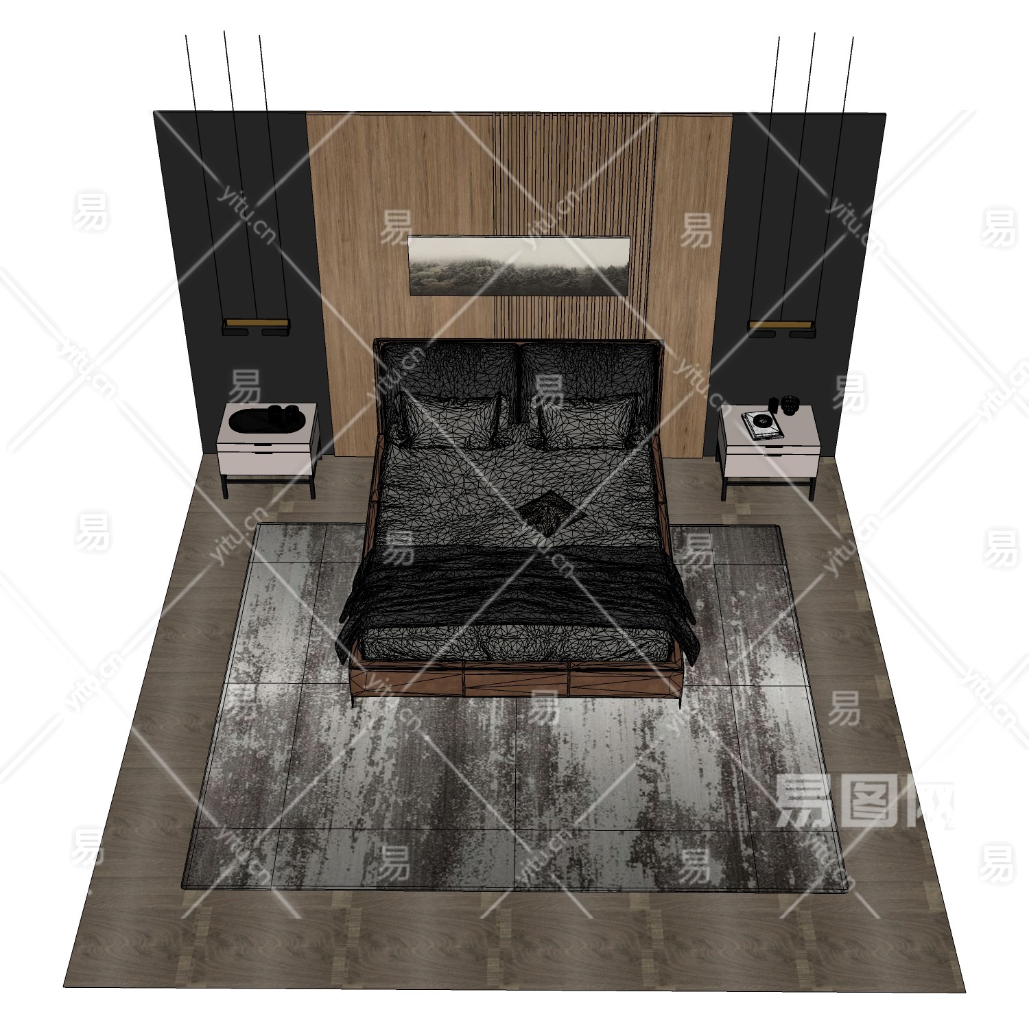 当前的位置:首页 > sketchup > sketchup模型 > 床具 > 双人床 > 简欧卧室双人床组合