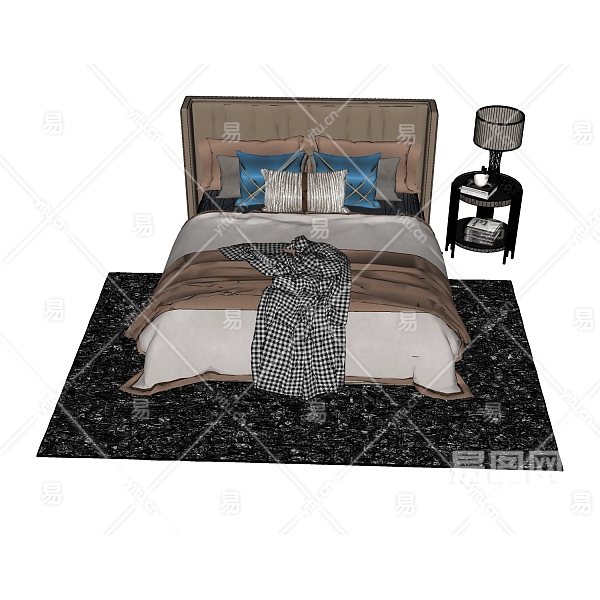 当前的位置:首页 > sketchup > sketchup模型 > 床具 > 双人床 > 简欧卧室双人床组合