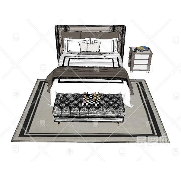 当前的位置:首页 > sketchup > sketchup模型 > 床具 > 双人床 > 简欧卧室双人床组合