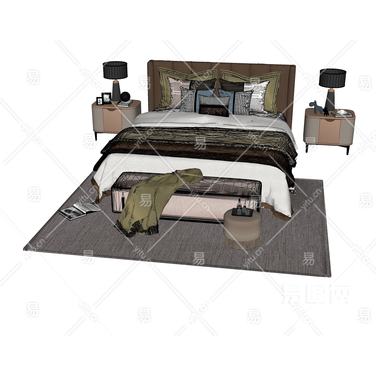 当前的位置:首页 > sketchup > sketchup模型 > 床具 > 双人床 > 简欧卧室双人床组合