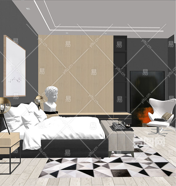 当前的位置:首页 > sketchup > sketchup模型 > 床具 > 双人床 > 简欧卧室双人床组合