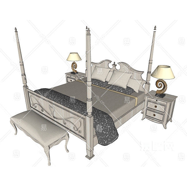 当前的位置:首页 > sketchup > sketchup模型 > 床具 > 双人床 > 欧式双人床