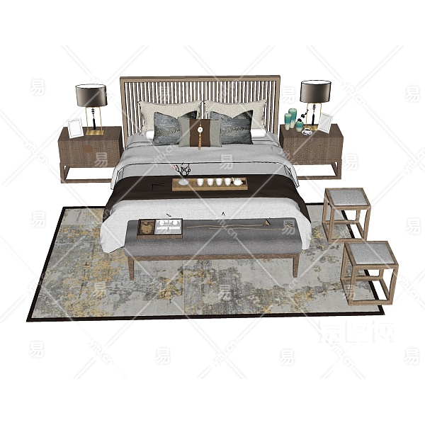 当前的位置:首页 > sketchup > sketchup模型 > 床具 > 双人床 > 新中式双人床