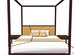 日式布艺双人床su模型