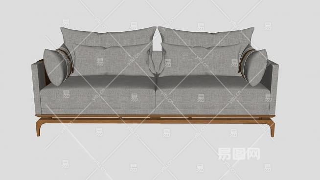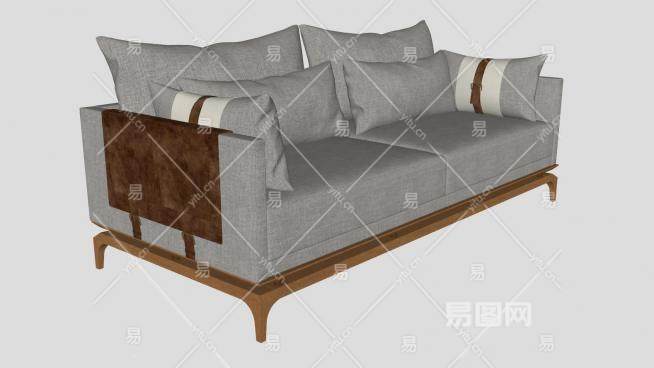 木质灰色直沙发家具SU模型下载_sketchup草图大师SKP模型