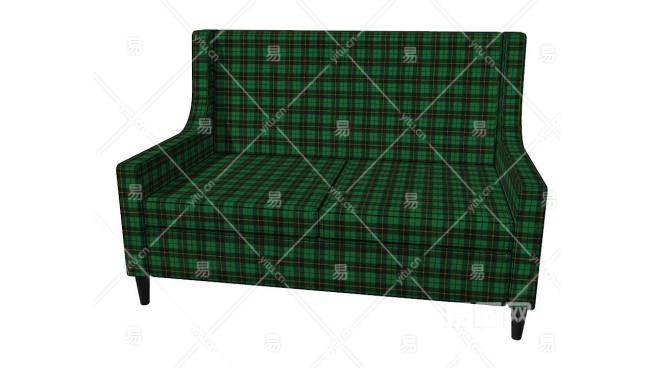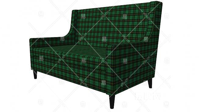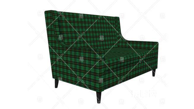 绿色格子布艺沙发双人沙发SU模型下载_sketchup草图大师SKP模型