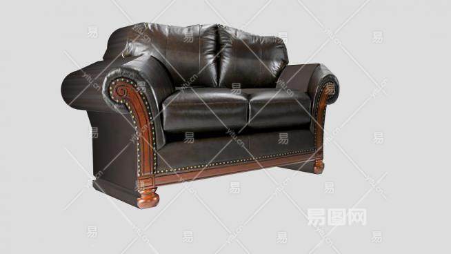黑色皮革双人小沙发SU模型下载_sketchup草图大师SKP模型