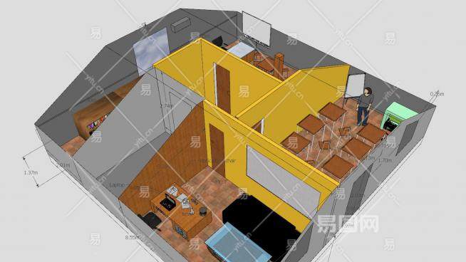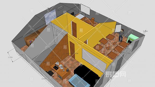 咨询办公三楼设计SU模型下载_sketchup草图大师SKP模型