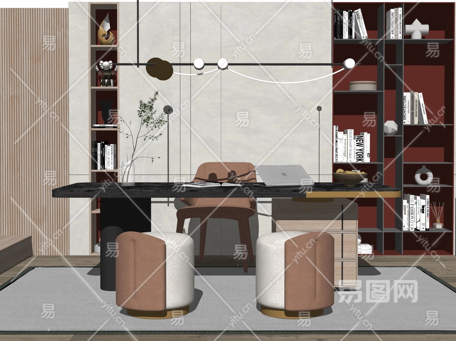 现代家居书房SU模型下载