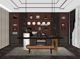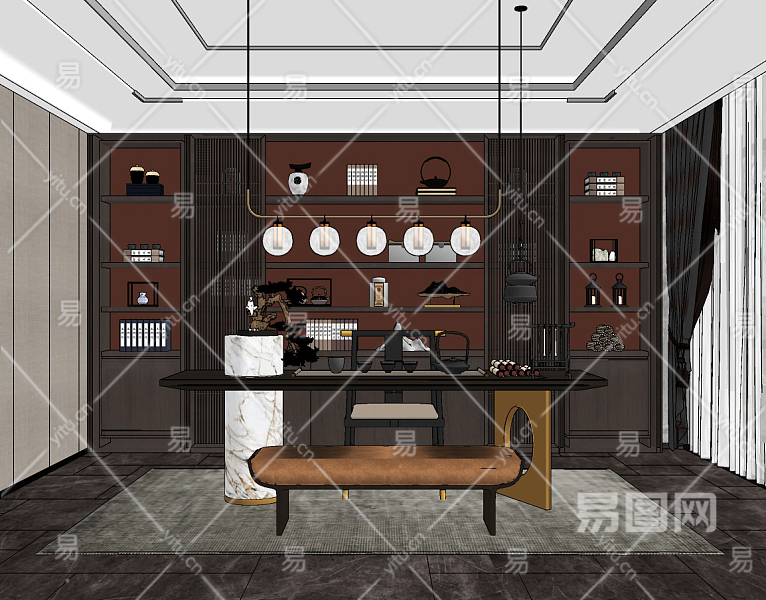 新中式书房,su草图模型下载
