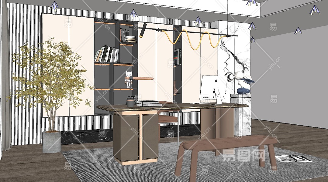 当前的位置:首页 > sketchup > sketchup模型 > 家装 > 书房 > 现代书房 书桌 书柜 办公桌 办公家具 盆栽 植物 吊灯