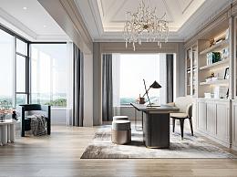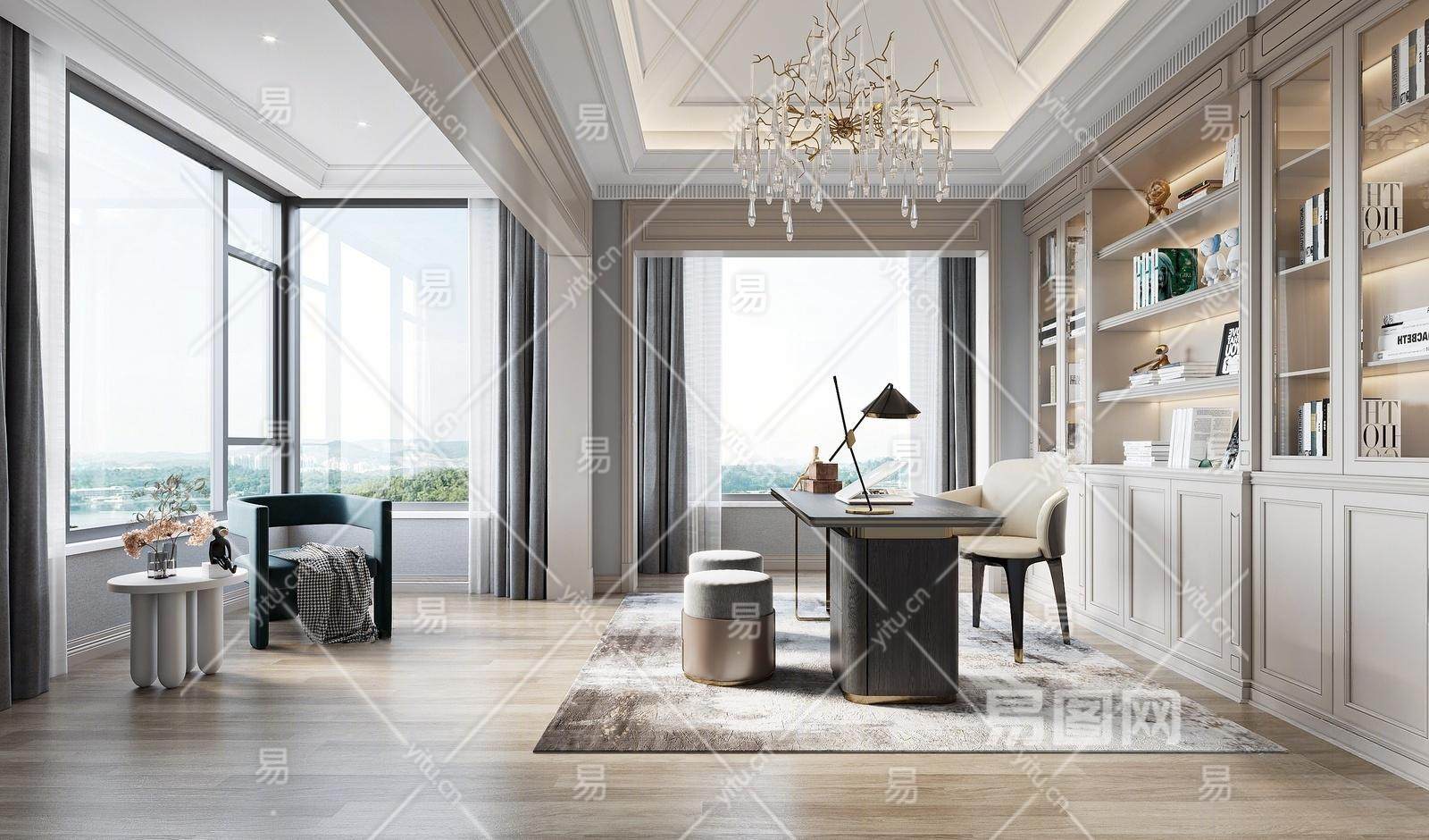 简欧书房 书桌椅 书柜