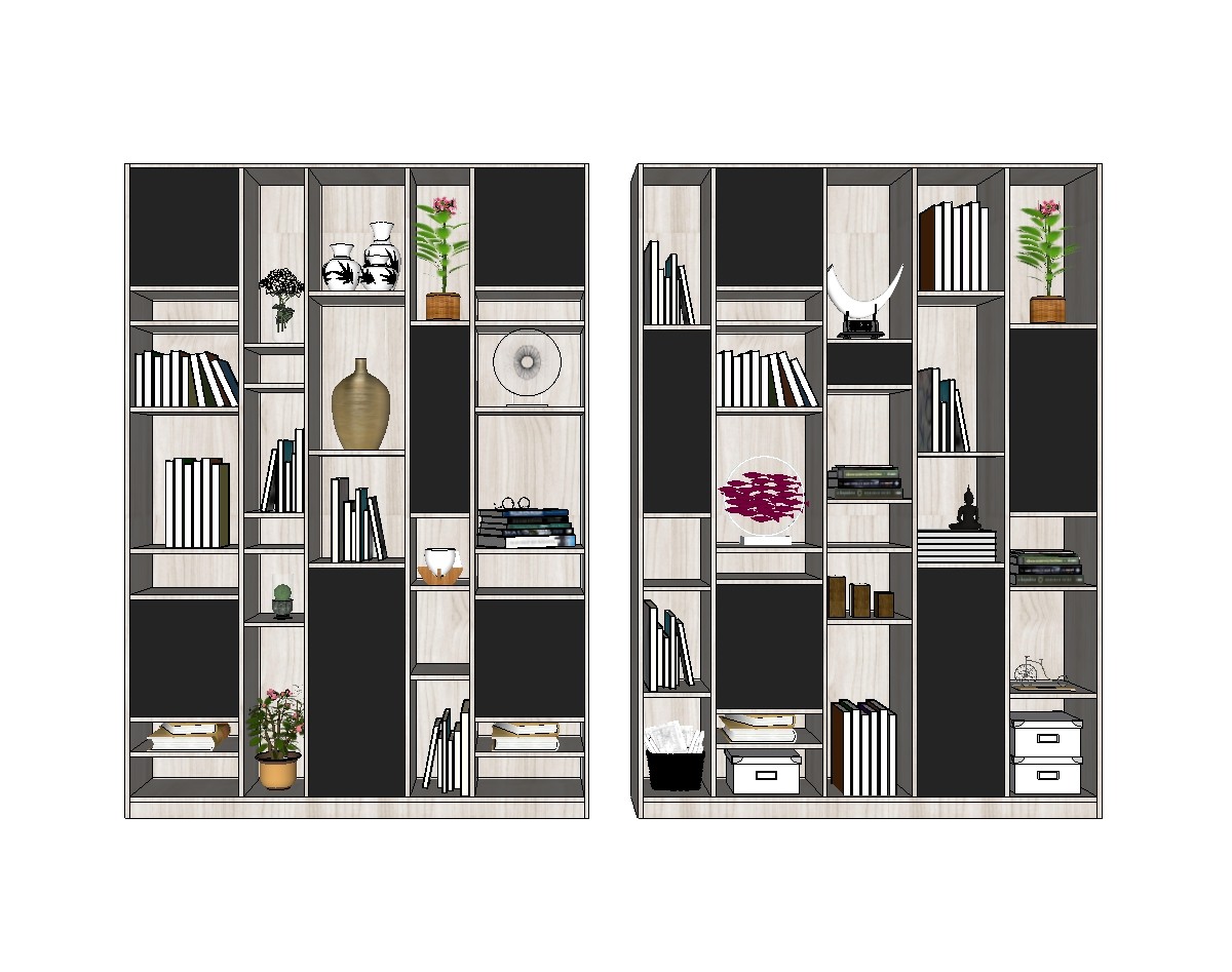 现代简约书柜su模型,书柜草图大师模型下载