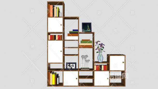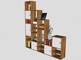 梯柜形状书架书柜SU模型下载_sketchup草图大师SKP模型