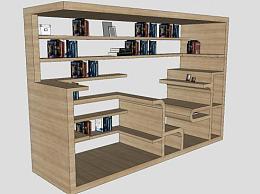 带座椅的书架书柜SU模型下载_sketchup草图大师SKP模型
