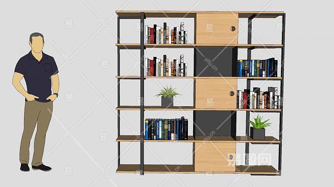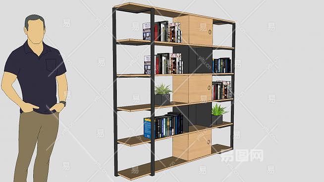 LOFT风格书架SU模型下载_sketchup草图大师SKP模型