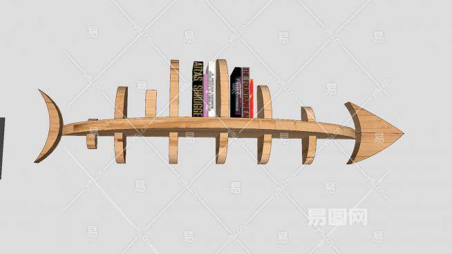 鱼骨书架陈设摆件SU模型下载_sketchup草图大师SKP模型
